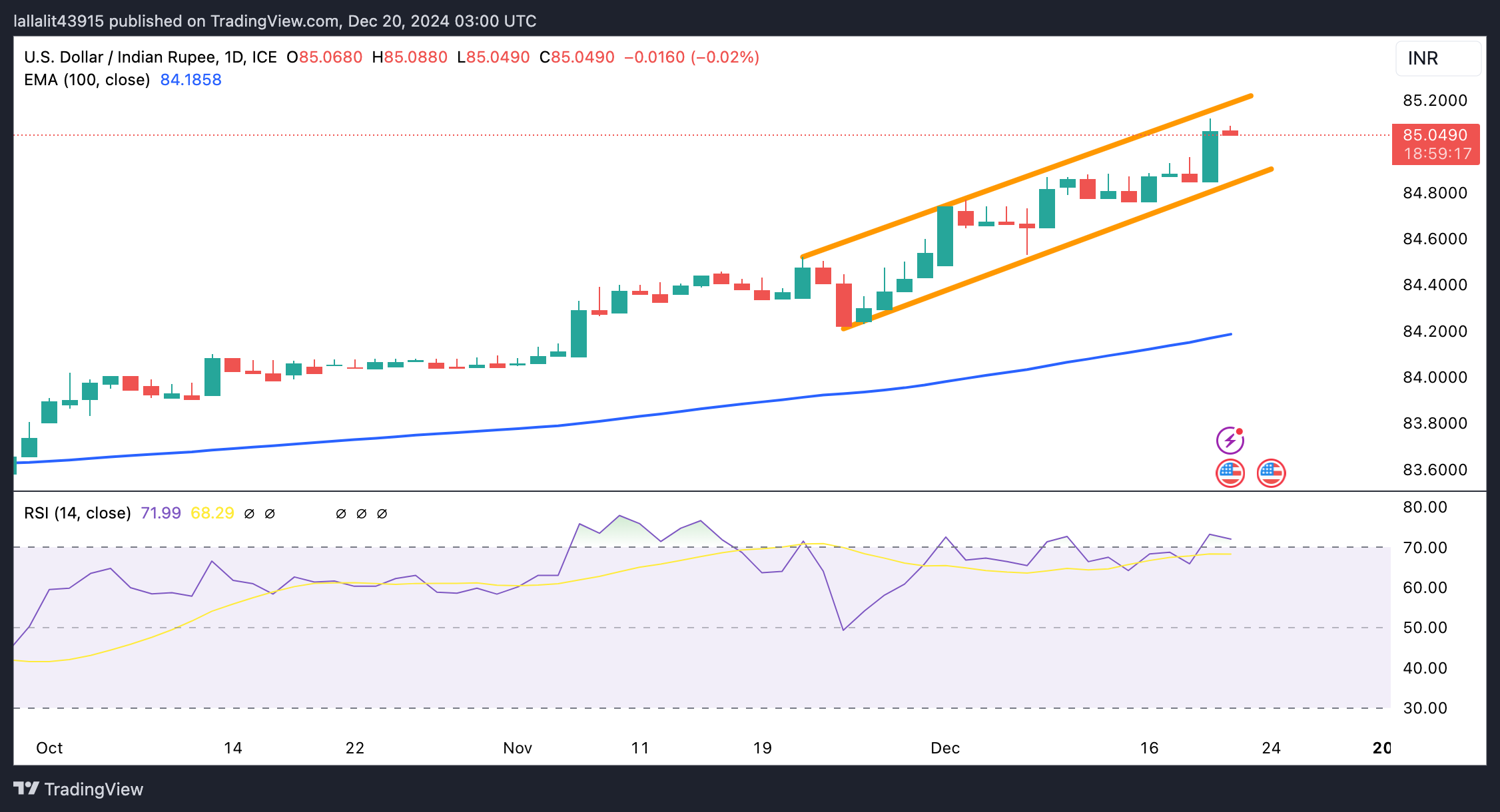 技术分析:美元/印度卢比长期保持强劲上涨趋势