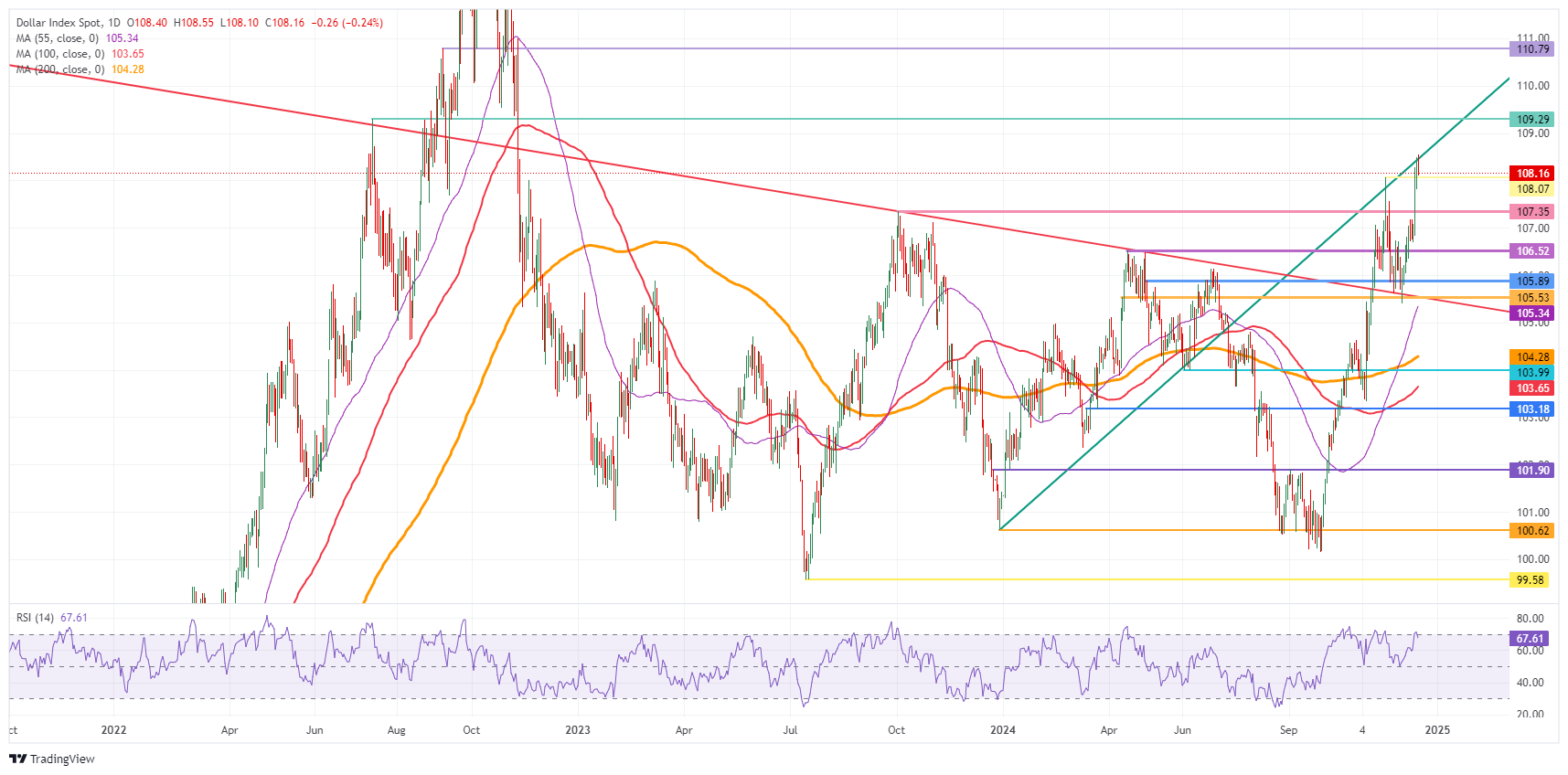 美元指数(DXY)在面临一些获利回吐之前达到108.55。