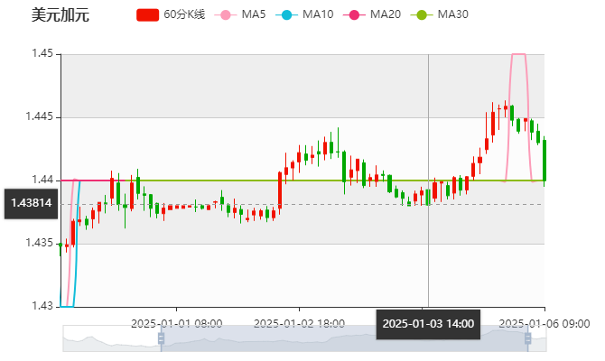 周一(1月6日)亚盘早盘,美元/加元最新价报1.4397,跌幅0.31%,开盘价为1.4447。加拿大统计局公布的初步数据显示,11月国内生产总值萎缩0.1%,为今年首次月度收缩,而前一个月则为增长0.3%。