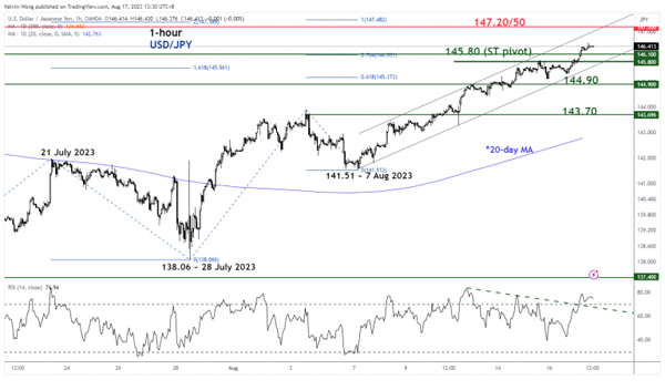 图1:截至2023年8月17日美元/日元中期趋势