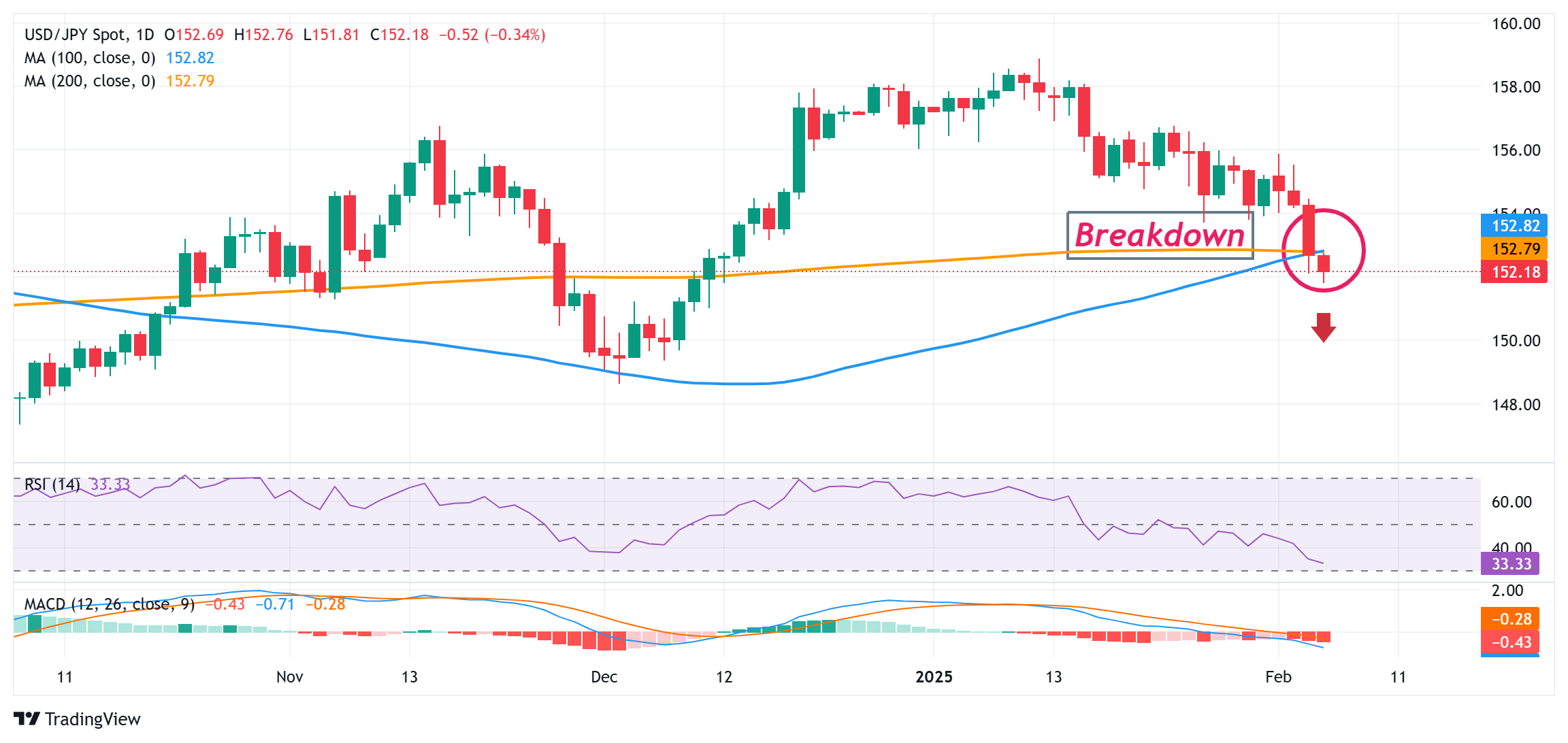 美元/日元可能在152.50汇合支撑点附近吸引新卖家