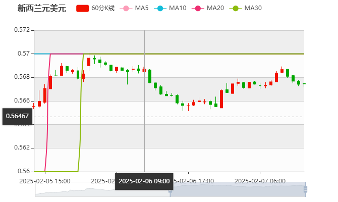 周五(2月7日)新西兰元兑美元汇率今日开盘报0.5672,昨日收盘于0.5676,截至发稿前新西兰元/美元报0.5685,涨幅0.24%,最高价0.5690,最低价0.5671。新西兰经济从去年进入衰退并呈现出一定复苏迹象,2024年新西兰的GDP预计会收缩0.2%,但预计在2025年和2026年分别反弹至1.2%和2.6%。