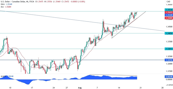 美元兑加元技术分析 – 4 小时时间框架