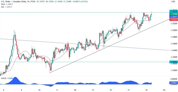 摘要:美元兑加元突破趋势线并反弹至阻力位。