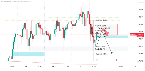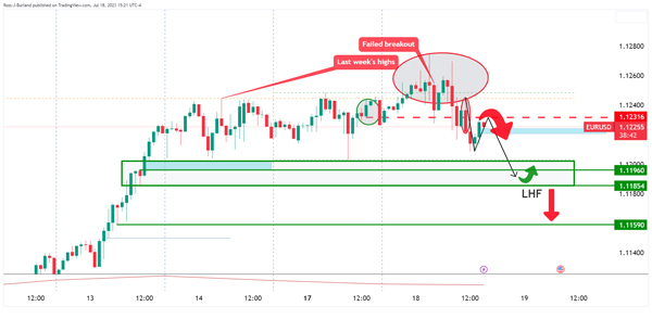 根据上面的日线图,到目前为止,欧元/美元仅限于近期看涨反弹的高点。较低的时间范围表明,在突破失败后,价格低于上周的低点: