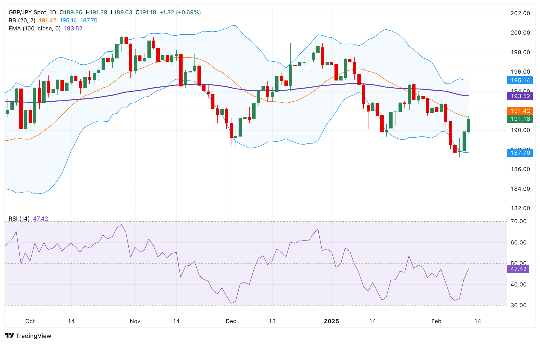 从好的方面来看,英镑/日元的关键阻力位出现在100天均线193.50附近。持续高于这一水平的交易可能会为195.15铺平道路,这是布林带的上限。另一个值得关注的上行过滤器是197.41,即1月6日的高点。