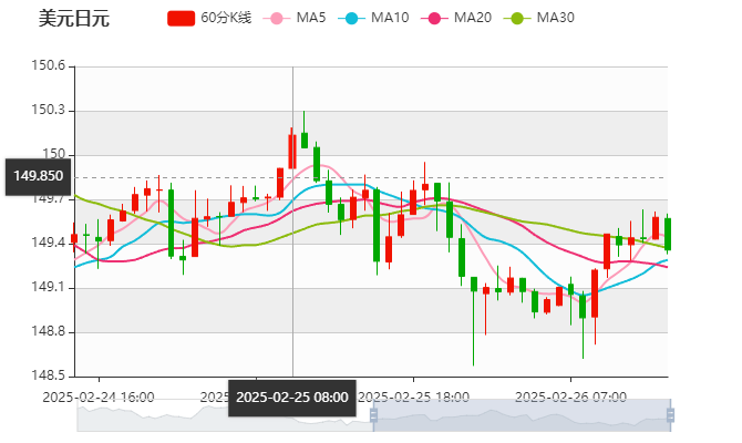 周三(2月26日)亚盘早盘,美元兑日元下跌,目前交投于149附近,截止北京时间9:39分,美元兑日元报价149.05,下跌0.02%,上一交易日美元兑日元收盘为149.08。日元近期的强势表现来自于日本最新公布的核心CPI数据。
