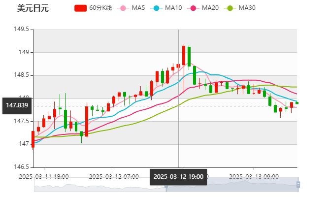 周四(3月13日)亚盘早盘,美元兑日元上涨,目前交投于148附近,截止北京时间10:52分,美元兑日元报价148.19,上涨0.02%,上一交易日美元兑日元收盘为148.17。日元持续获得支撑主要受益于市场对日本央行进一步加息的预期。