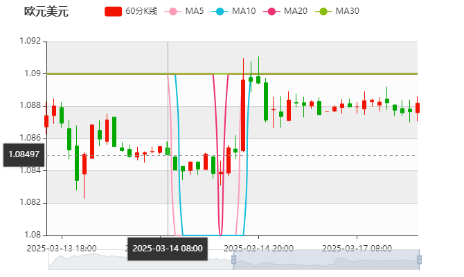 周一(3月17日)亚盘早盘,欧元兑美元上涨,目前交投于1.08附近,截止北京时间9:46分,欧元兑美元报价1.0888,涨幅0.04%,上一交易日欧元兑美元收盘为1.0884。投资者因欧美贸易关系前景不明朗而保持谨慎,欧元/美元近日上涨动力不足。