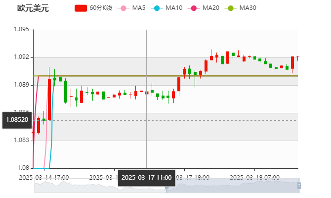 周二(3月18日)亚盘早盘,欧元兑美元下跌,目前交投于1.09附近,截止北京时间9:45分,欧元兑美元报价1.0915,跌幅0.08%,上一交易日欧元兑美元收盘为1.0923。法国兴业银行策略师指出,欧元兑美元可能延续涨势,主要受益于美国经济增长放缓的担忧。