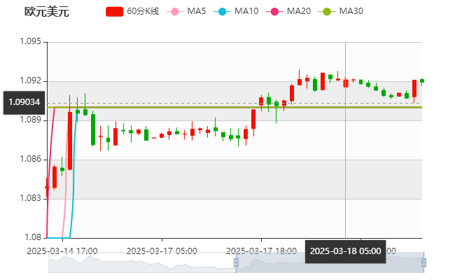 周二(3月18日)亚盘早盘,欧元兑美元下跌,目前交投于1.09附近,截止北京时间10:37分,欧元兑美元报价1.0909,跌幅0.14%,上一交易日欧元兑美元收盘为1.0923。欧元的基本面目前承受着多重压力。