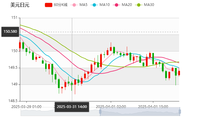 周二(4月1日)亚盘早盘,美元兑日元下跌,目前交投于149附近,截止北京时间10:15分,美元兑日元报价149.82,下跌0.05%,上一交易日美元兑日元收盘为149.89。美国总统特朗普上周三宣布将对进口汽车和轻型卡车征收25%的高额关税,该政策计划于4月3日正式生效。