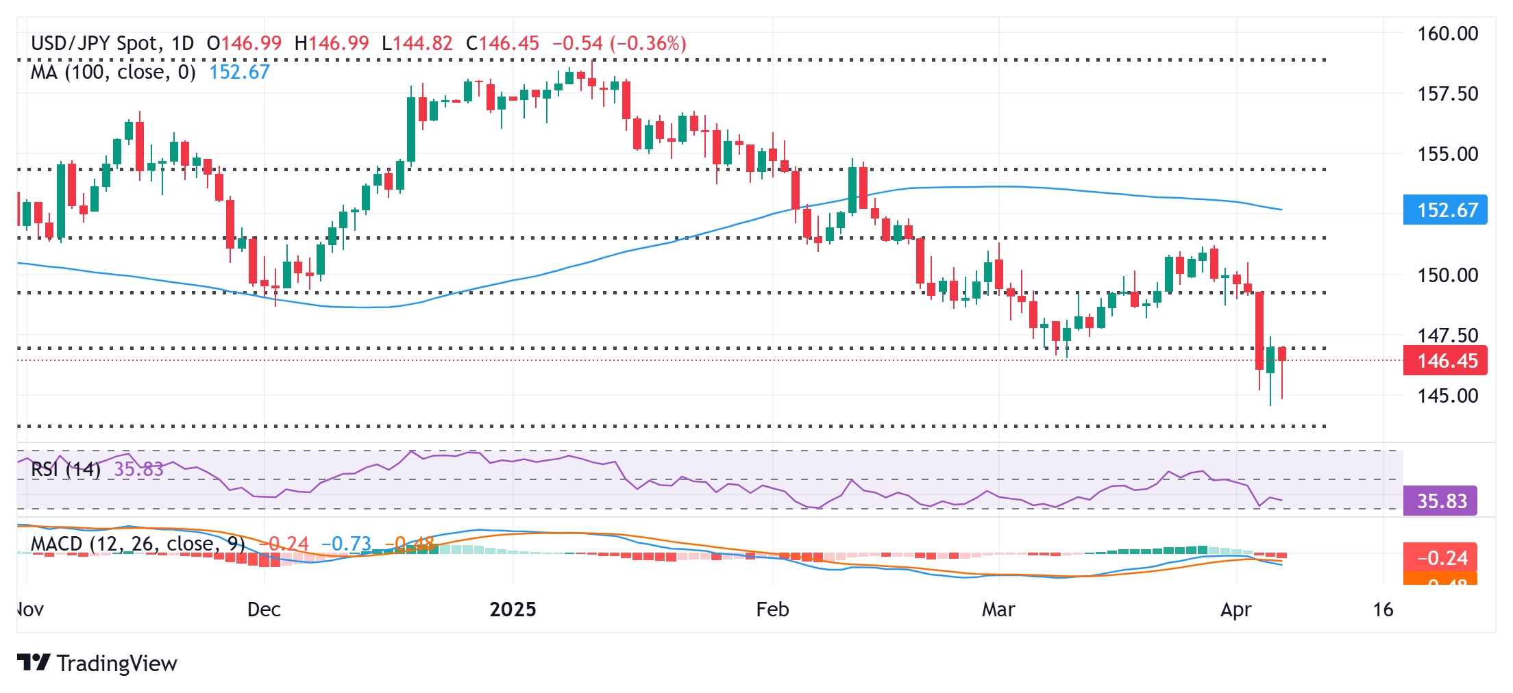 日元(JPY)在新一周以积极的势头开局,美国总统唐纳德·特朗普广泛的互惠关税提高了全球经济放缓的风险,并继续支持传统的避险资产。同时,对美国更严格的互惠关税可能对日本经济产生负面影响的担忧,促使投资者减少对日本银行(BoJ)将更快提高政策利率的押注。这反过来成为日元的阻力,帮助美元/日元对逆转亚洲时段的下跌,重新接近六个月低点——周五触及的心理支撑位145.00下方的水平。
