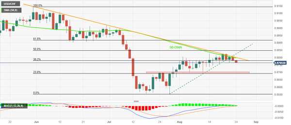 由此,瑞士法郎 (CHF) 货币对卖家逼近 0.8700 关口附近一个月前的水平支撑区域。