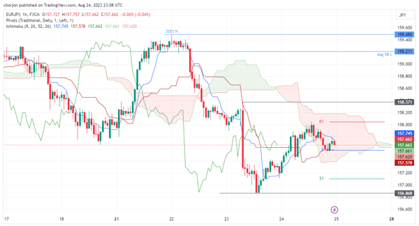该货币对努力攻克 158.18 的 Tenkan-Sen 线,表明势头可能发生转变。