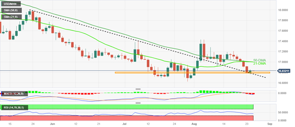 美元/墨西哥比索价格分析:在美联储鲍威尔讲话之前,墨西哥比索从 16.80 支撑位回落