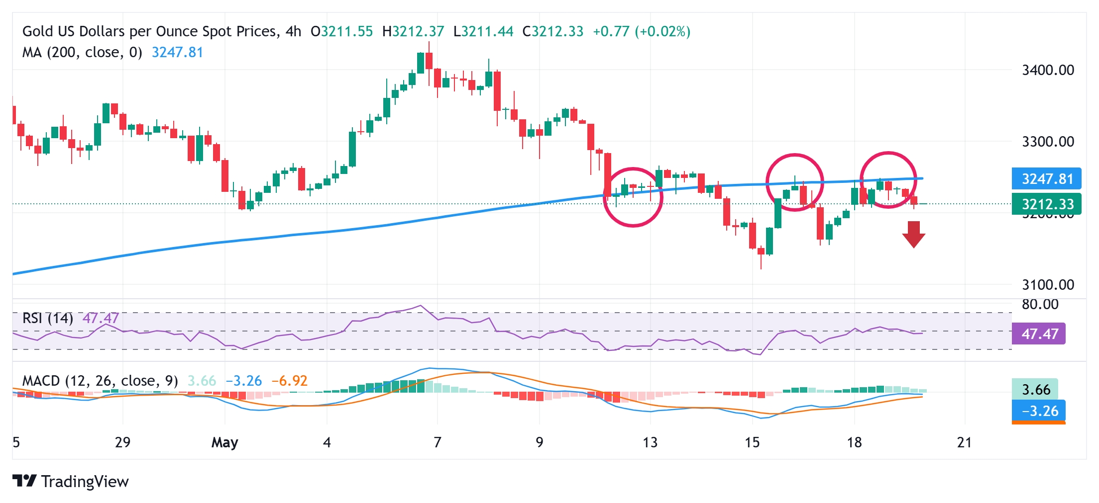 由于H4图表上黄金价格在200期简单移动平均线附近面临强劲阻力,可能会继续面临$3,250-3,255区域的阻力。