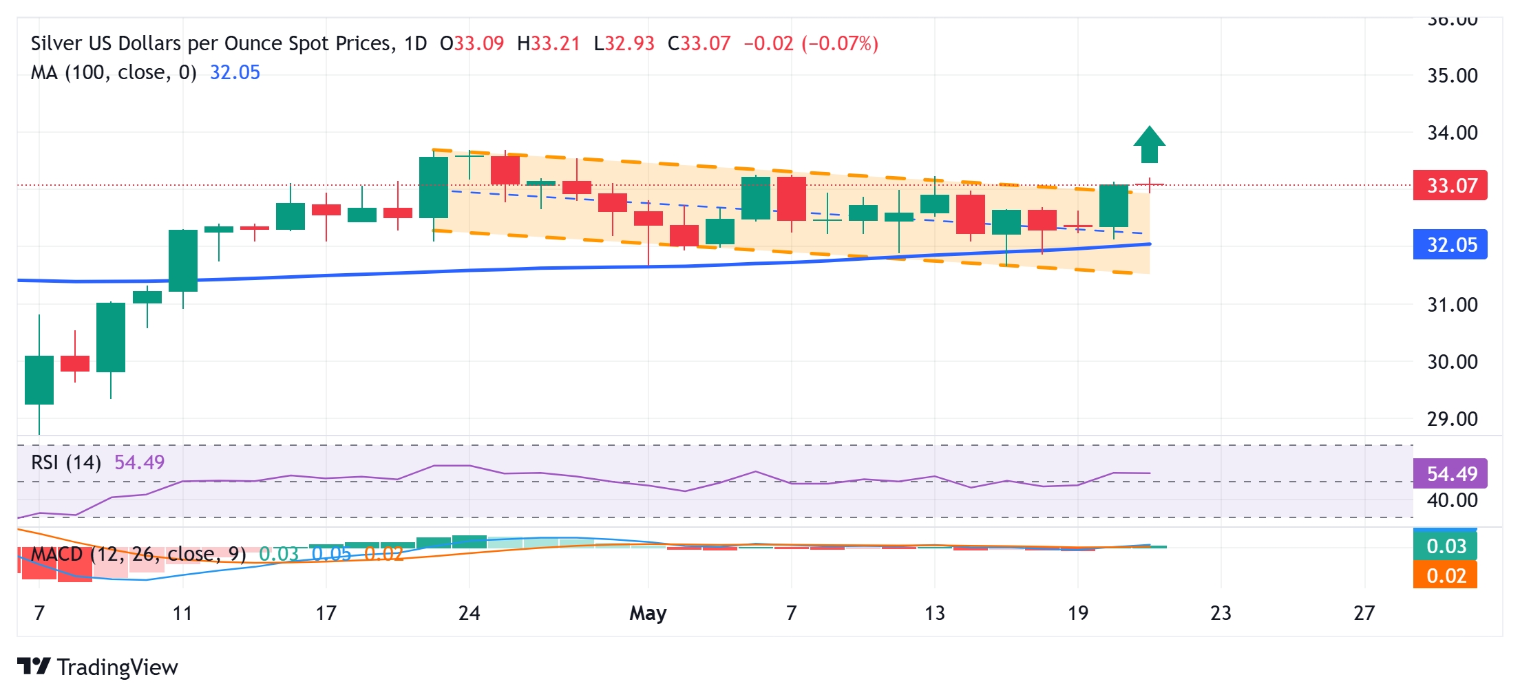 银价预测:白银/美元在33.00美元附近整理;似乎准备进一步上涨