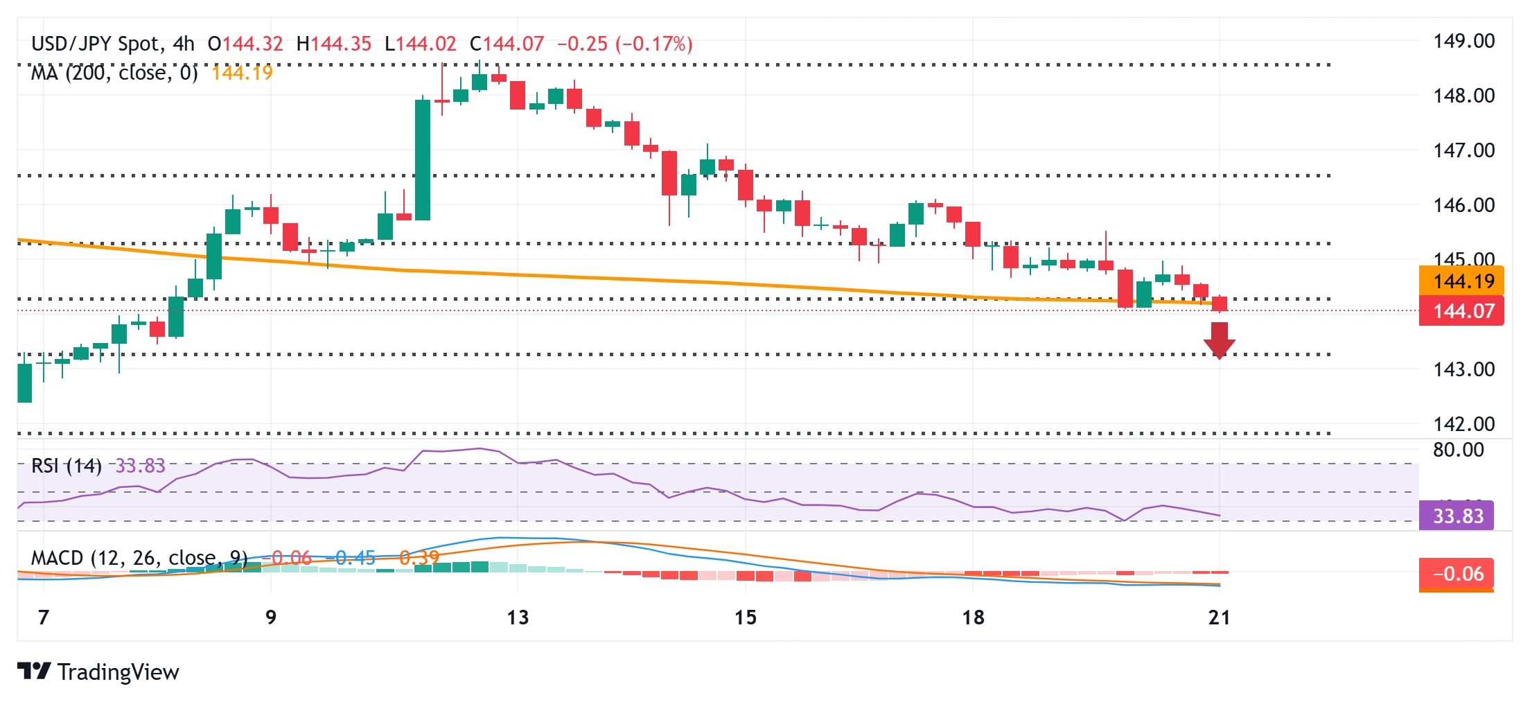 美元/日元似乎容易延续下跌趋势;144.30-144.20支撑位正在发挥作用。