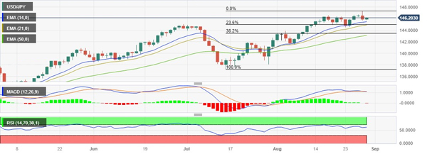 美元/日元价格分析:该货币对从近期跌势中恢复,徘徊在 146.00 上方