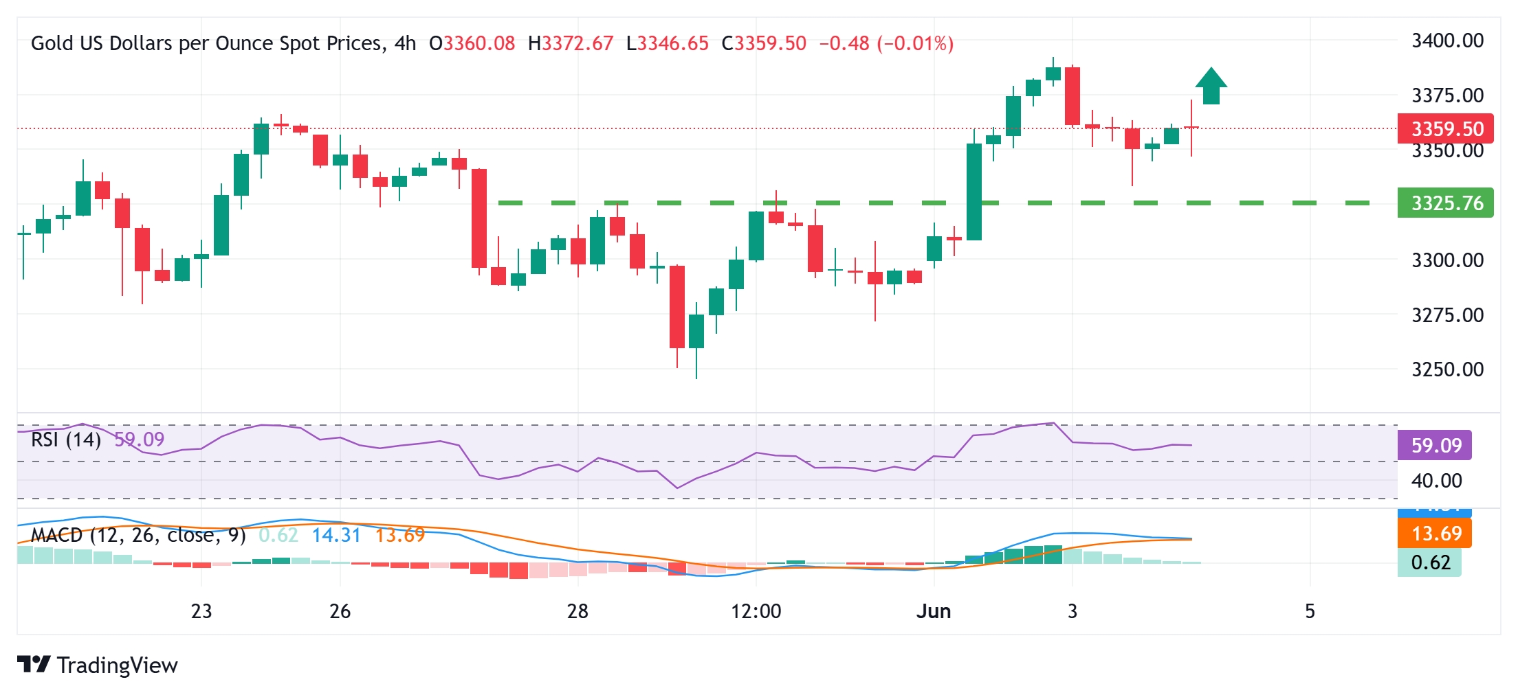 黄金价格下跌至$3,326-3,324的阻力位,被视为买进机会的支持位。
