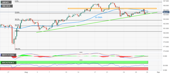 如果报价在 183.25 上方保持看跌,则 7 月 28 日至 8 月 22 日上涨的 61.8%斐波那契回撤位(接近 180.30)和 180.00 整数将吸引英镑/日元卖家。