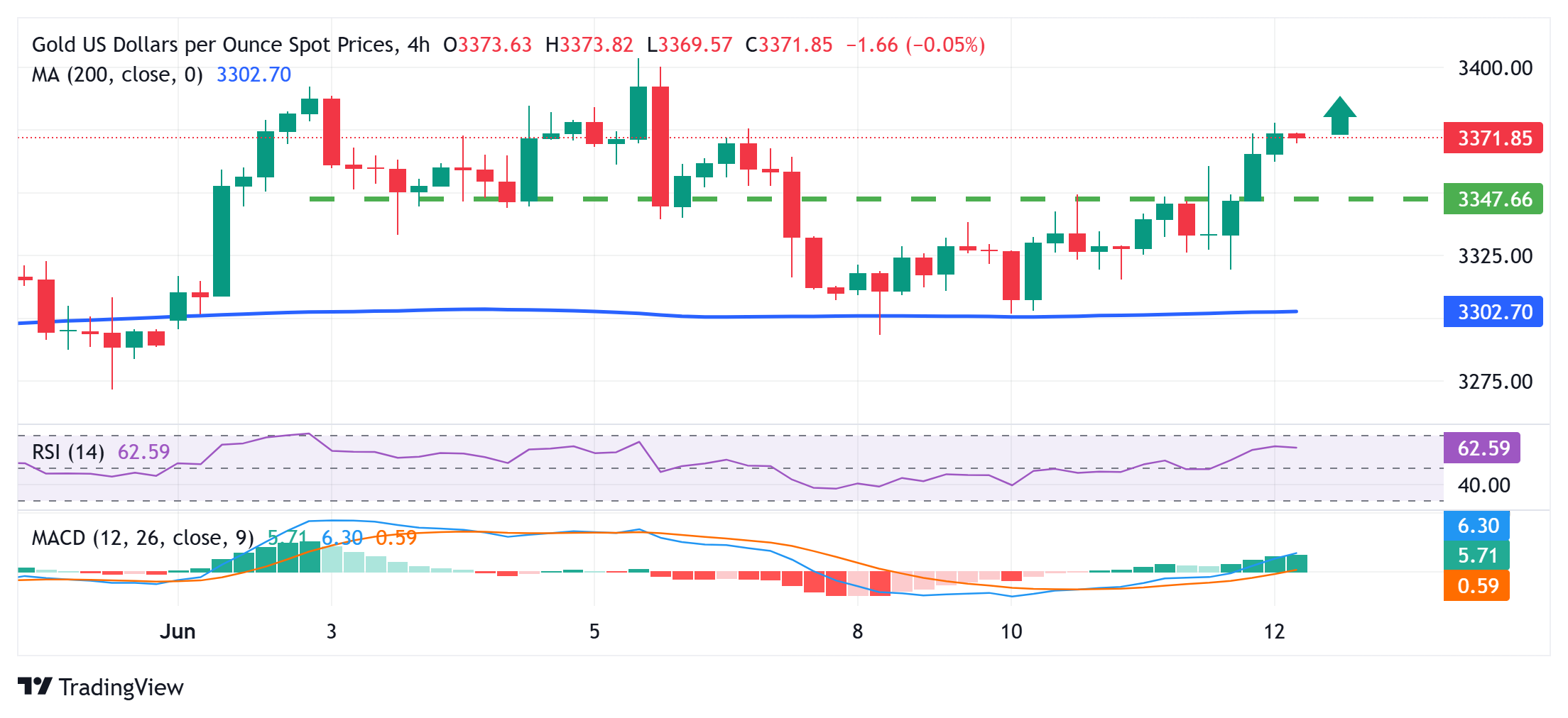 黄金价格 (XAU/USD) 在亚洲时段周四连续第二天吸引了部分跟风买家,攀至一周高点,约为每盎司3,377-3,378美元。美国总统唐纳德·特朗普的新关税威胁抵消了高规格的美中贸易谈判的积极成果。此外,中东地区的地缘政治紧张局势加剧,降低了投资者对风险资产的兴趣,推动安全避风港的资金流向黄金。除了这一点,美元普遍存在的抛售趋势也被视为支持该商品的另一个因素。
