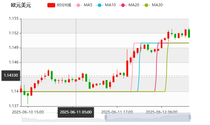 周四(6月12日)亚盘早盘,欧元兑美元上涨,目前交投于1.15附近,截止北京时间11:30分,欧元兑美元报价1.1517,涨幅0.28%,上一交易日欧元兑美元收盘为1.1485。欧洲央行管委卡日米尔表示,欧洲央行的降息行动已接近尾声,应利用夏季几个月观察数据以确定是否需要进一步微调政策。