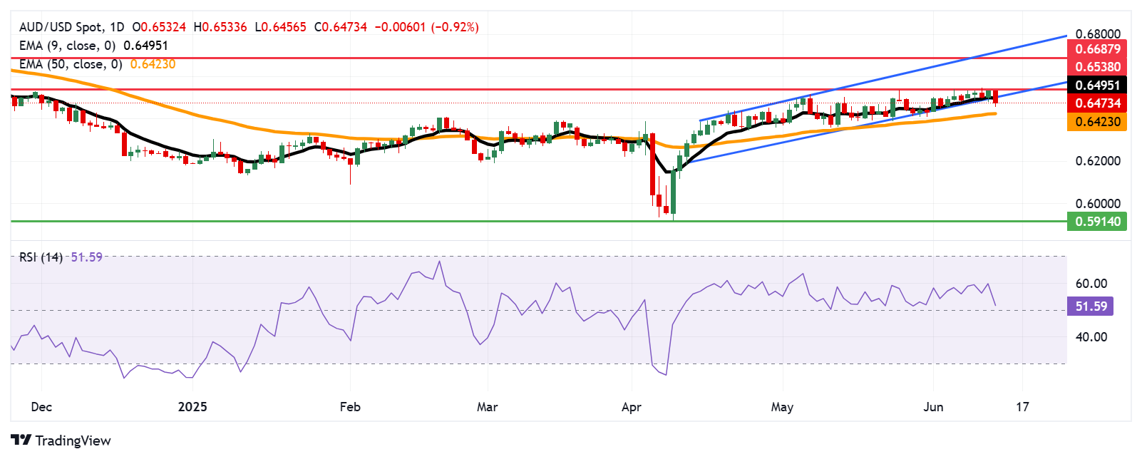 周五,澳元/美元对在0.6460附近交易。日线图的技术分析表明,由于该对已突破上升通道的下边界,看涨偏见有所减弱。此外,该对低于九日指数移动平均线(EMA)也表明短期价格动量在减弱。然而,14日相对强弱指数(RSI)仍略高于50标记,表明存在看涨偏见。