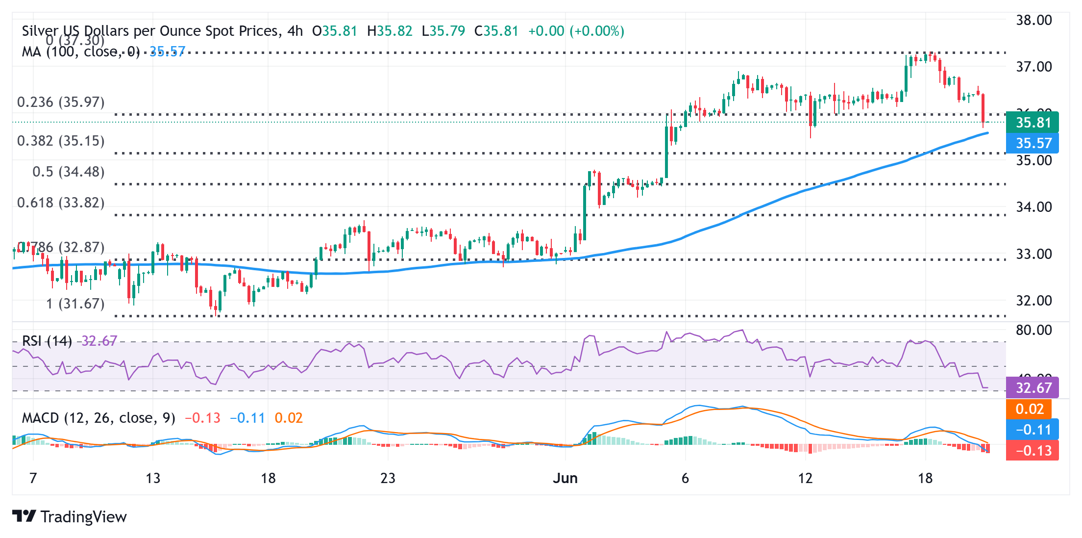 银价预测:白银/美元下跌至一周低点,进一步低于 36.00 美元