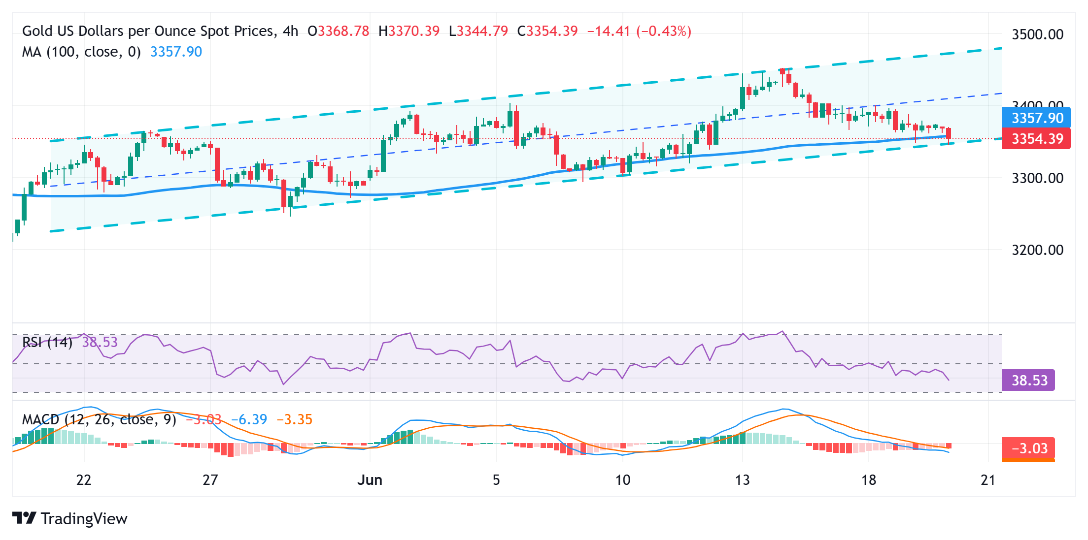 黄金价格(XAU/USD)在欧洲交易时段的前半段 consolidating日内损失,达到一周多以来的最低点,并且在3350美元附近窄幅整理。美国联邦储备系统(Fed)本周早些时候下调了2026年和2027年的降息预期,这在一定程度上为美元(USD)提供了支持,并削弱了对无收益资产黄金的需求。