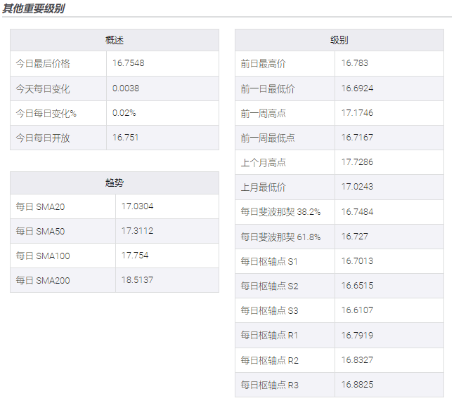 美元/墨西哥比索在周三早些时候触及看涨图表模式内的关键上行障碍,接近盘中高点,截至发稿时接近 16.75。