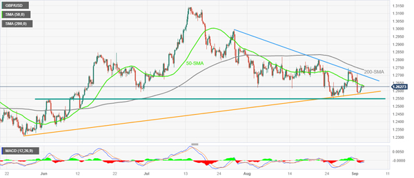 周二亚洲时段早盘,英镑/美元艰难守住周初反弹走势,并一度升至 1.2625-30。在此过程中,随着美国劳动节假期后市场全面回归,英镑/美元与 50 均线展开竞争。除了 50 移动平均线外,英国 8 月份标准普尔全球/CIPS 采购经理人指数最终数据和美国 7 月份工厂订单数据公布前的谨慎情绪也刺激了英镑。