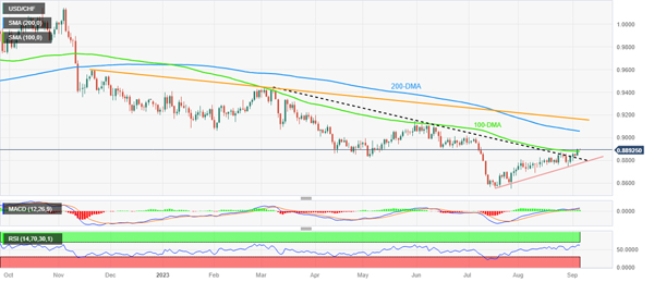 美元/瑞郎价格分析:小幅走高,突破 0.8880 附近的 100 日均线障碍