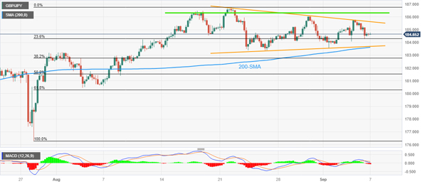 英镑/日元价格分析:在 13 天三角形内,三周涨幅首次跌破 185.00