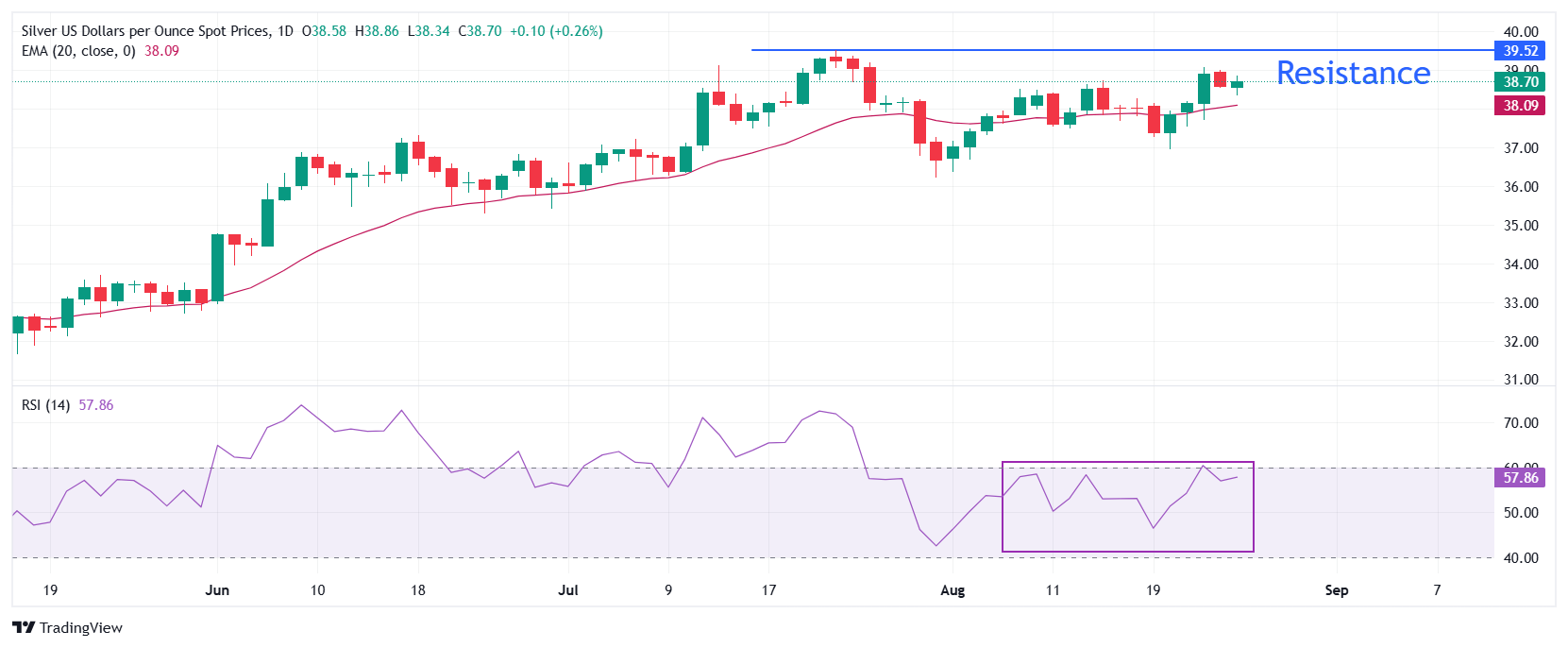 银价预测:由于美联储官员库克的离职,XAG/USD上涨至接近38.80美元。