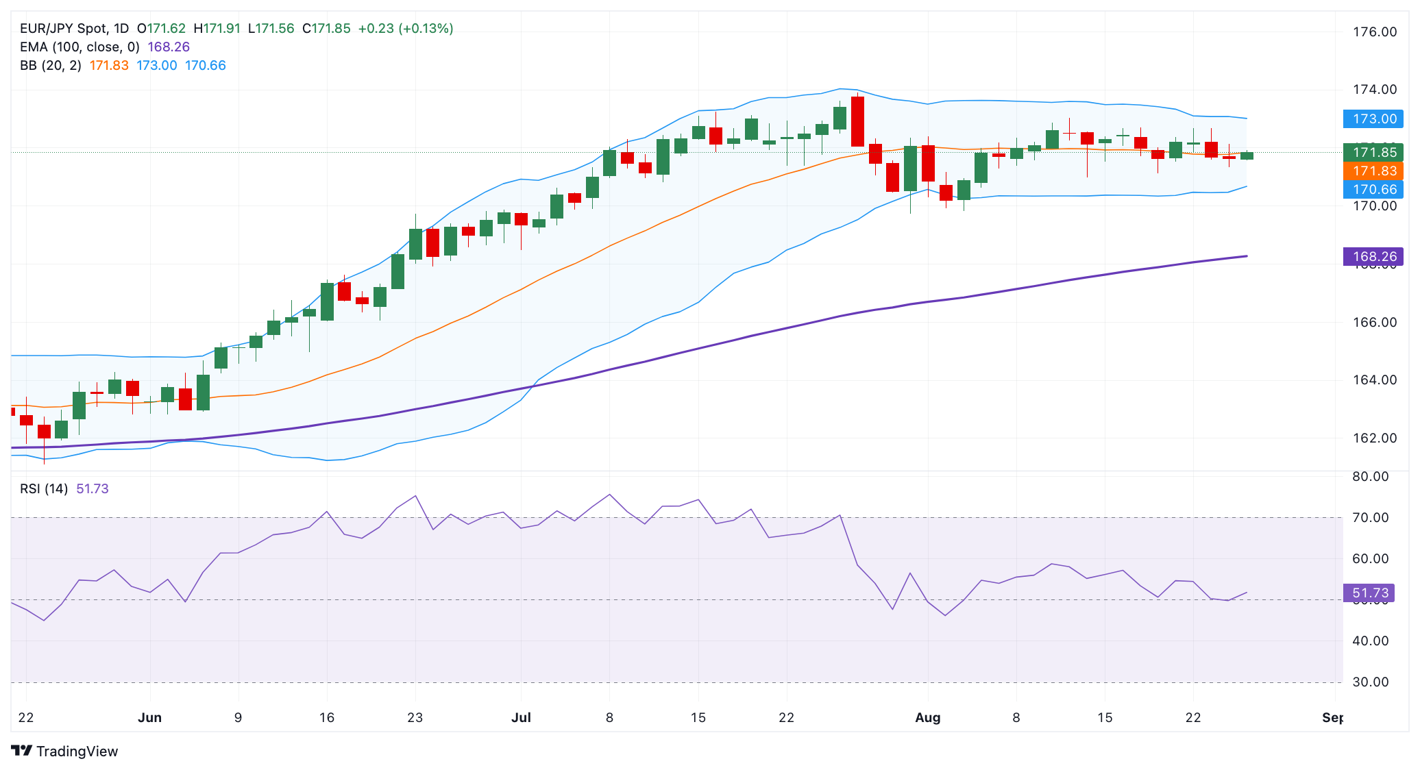 从技术上来看,EUR/JPY在日线上保持看涨情绪,价格保持在重要的100日指数移动平均线(EMA)上方。然而,由于14日相对强弱指数(RSI)在中线附近徘徊,进一步的整理或暂时下跌也不能排除。这表明在短期内中性动力。