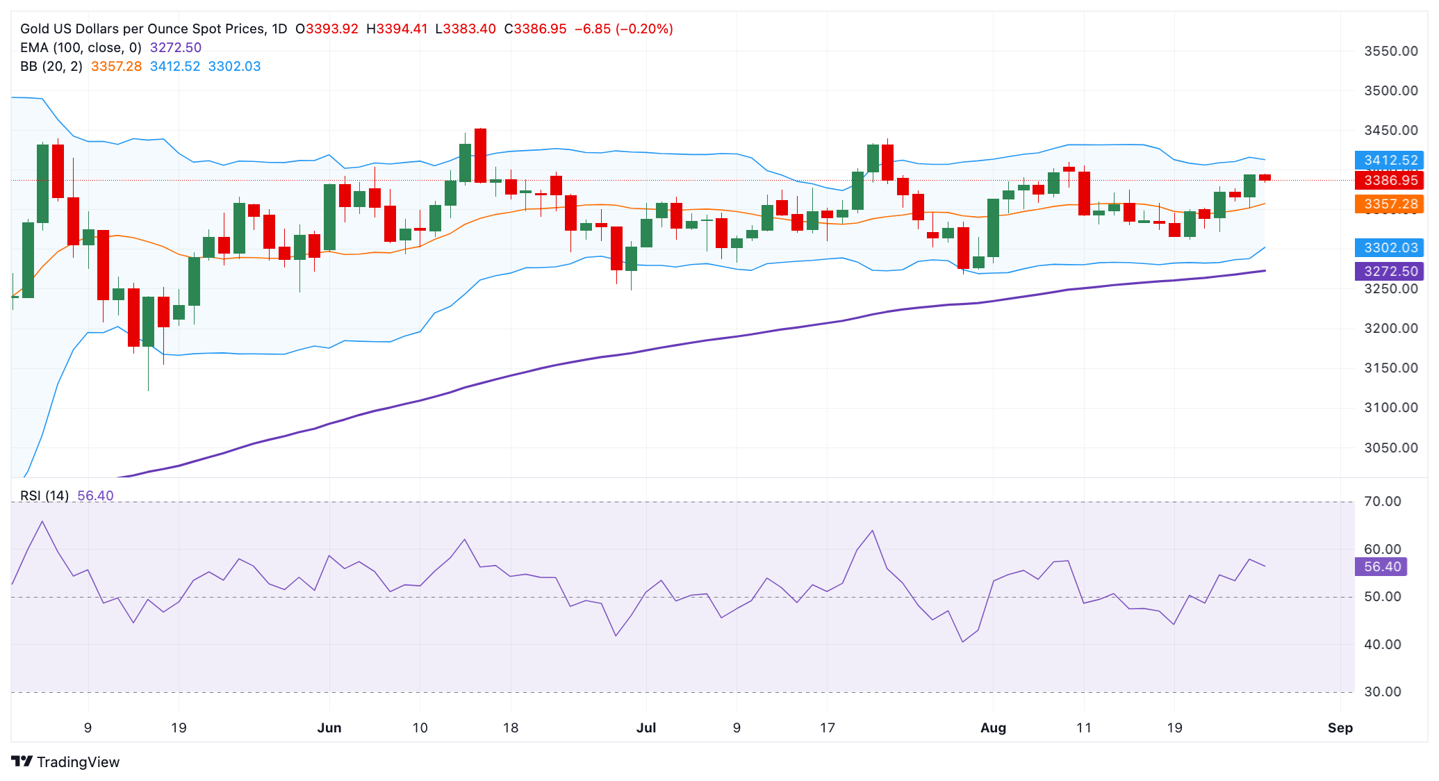另一方面,如果XAU/USD继续吸引卖家,并且更多的阴线出现,价格可能会直接回到8月21日的低点3325美元。持续在这一水平以下交易可能会暴露出3200美元,这是布林带的下限和整数关卡。