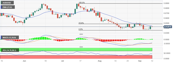 关键阻力位出现在与 0.6450 心理水平一致的 21 日均线。