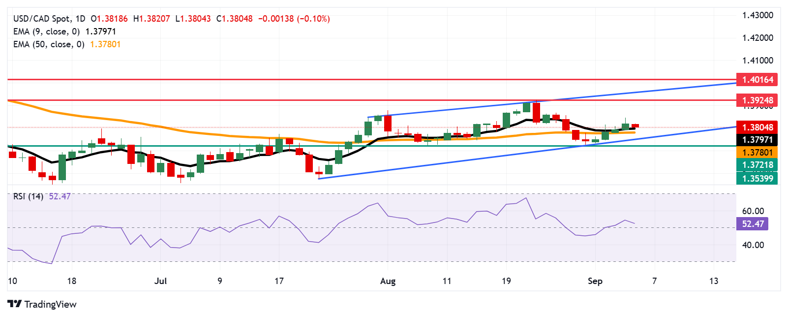 美元/加元价格预测:测试1.3800附近的支撑区,九日指数移动平均线