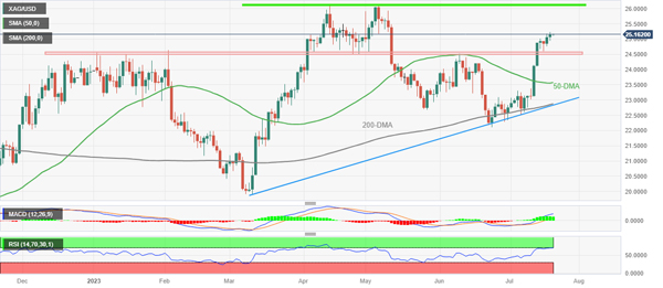 白银价格分析:超买 RSI 促使 XAG/美元上涨至 26.10-15 美元关口