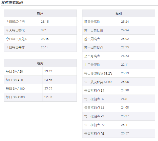 此后,金价似乎即将跌向 23.60 美元左右的 50 日均线水平。