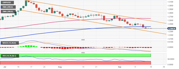 从技术角度来看,近期沿着向下倾斜通道的下跌表明短期下行趋势已经确立。除此之外,上周自 3 月份以来首次突破非常重要的 200 日简单移动平均线 (SMA),被视为看跌交易者的新触发因素。随后的下跌和低于 1.2400 整数的接受证实了负面前景。这与日线图上的负震荡指标一起表明英镑/美元货币对的最小阻力路径仍然是下行。