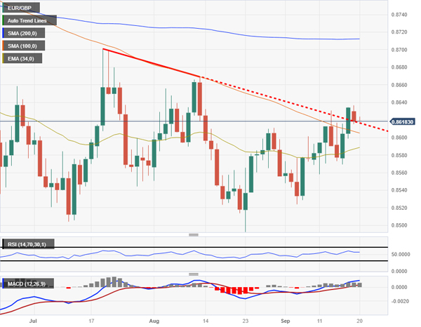 尽管欧元最近从 8 月底部接近 0.8500 的水平上扬,但仍未能牢牢维持该货币对,如果英镑多头在本周后半段发现站稳脚跟,趋势线突破可能只是暂时的。