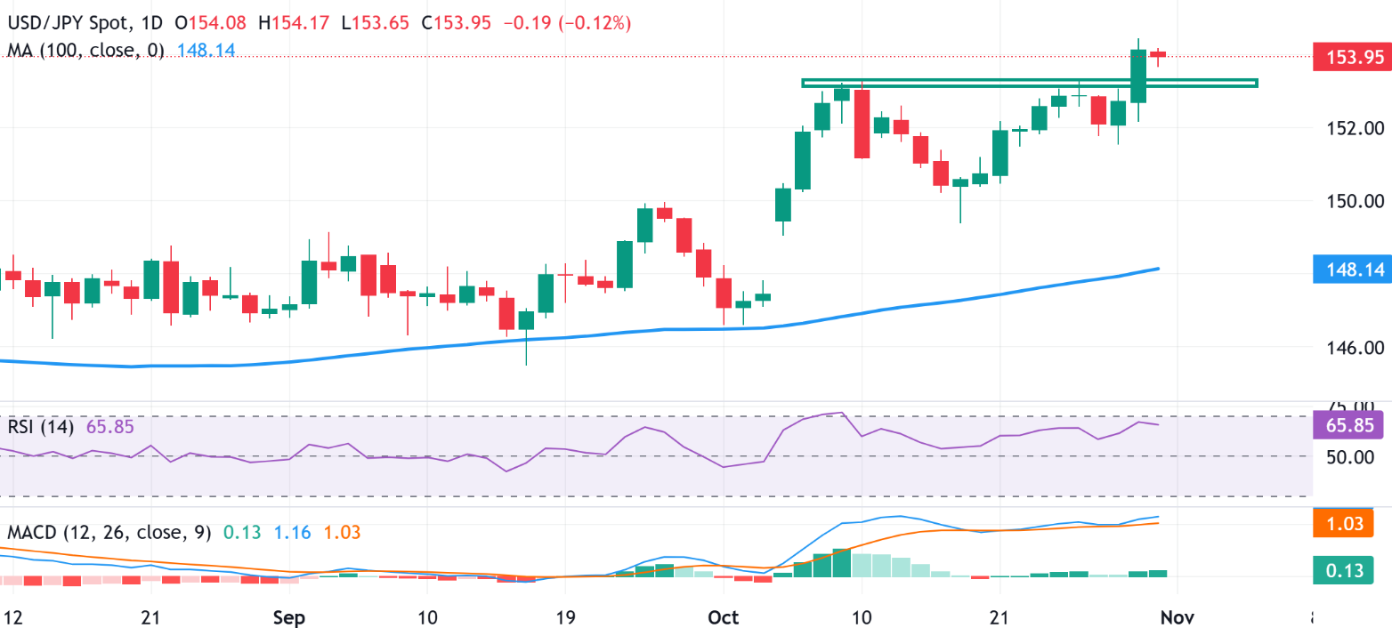 美元/日元似乎有望进一步突破155.00的心理防线。