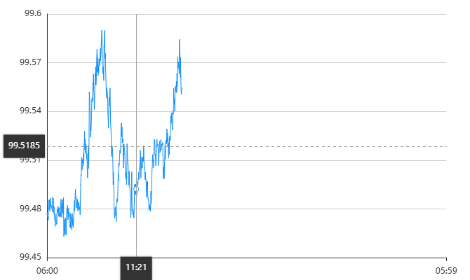 美元指数昨日震荡盘整,日线微幅收涨,现汇价交投于99.50附近,美指周三上涨在99.70之下遇阻,下跌在99.40之上受到支持,意味着美元短线下跌后有可能保持上涨的走势。如果美指今天下跌在99.35之上企稳,后市上涨的目标将会指向99.70--99.85之间。今日美元走势关注100.00附近的压力情况,下方支撑在99.00附近。