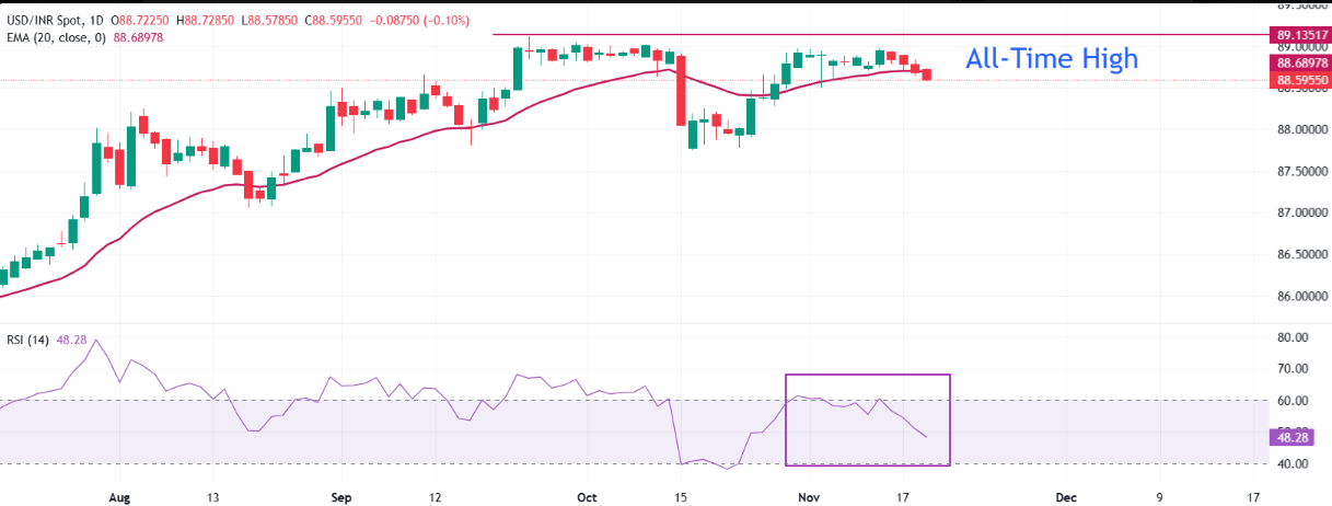 技术分析:美元/印度卢比进一步修正至接近88.60
