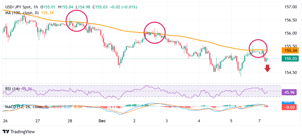 相比之下,CME Group的FedWatch工具显示,交易员目前认为美国联邦储备委员会(Fed)将在周三再次降低借贷成本的可能性接近90%。这导致美元指数维持在10月底以来的最低水平附近,并对美元/日元这对货币产生了压力。