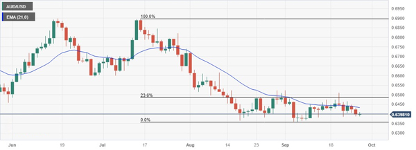 技术分析:澳元徘徊于0.6400心理关口下方,支撑位于月度低点