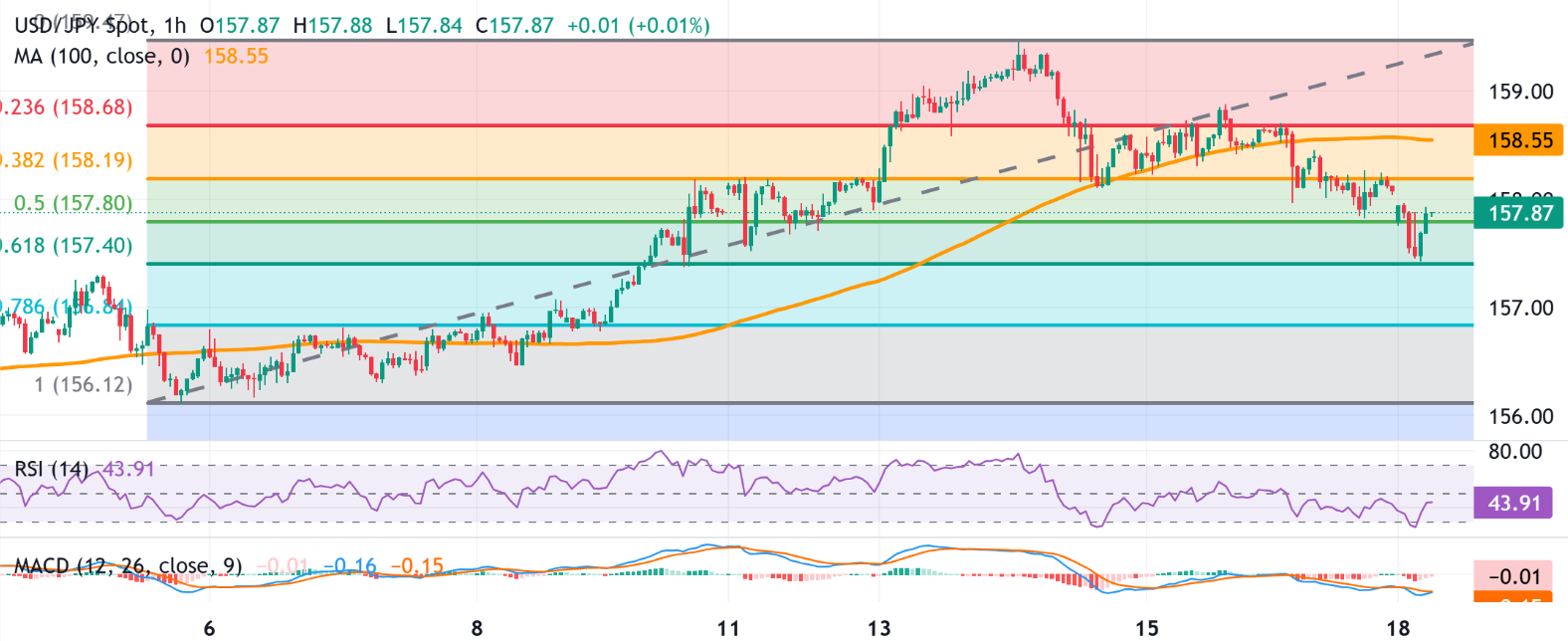 与此同时,美元/日元汇率在100小时简单移动平均线(SMA)下方交易,约为158.55区域,这应该限制反弹。若收盘价再次回到该平均线上方,将使短期走势更加积极。